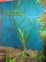 Луковичное растение с узкими 2-5мм листьями длинной до 1 метра, темно-зеленого цвета. Листья с волнистыми краями и четко выделенной центральной жилкой. Размножается дочерними луковицами. У меня растет в разогнанном травнике и не смотря на это растет очень медленно. Рекомендую высаживать на задний план, на фоне других растений листья кринума каламистратума выделяются особенным изяществом. Как и все медленорастущие растения, кринум при неблагоприятных условиях содержания, склонен к обрастанию водорослями. Взрослый куст удалось сфотографировать отдельно только при редизайне акваса, поэтому фото не четкое.