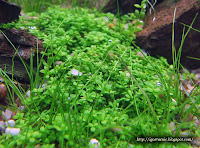 "Куба" была пересажена в аквас с питательной, гумусной подложкой, но поверх гумуса уложено три сантиметра нейтральной гальки. Судя по корневой системе, выдрал пару веток, "куба" до гумуса ещё не добралась. Свет 1вт/л, со2 1п/с распылением, dKH 4 , микро+макро минимально, кроме хема растут: Lilaeopsis brasiliensis, два вида Eleocharis' a и Echinodorus tenellus. Растёт быстрее чем элеохарис парвула и начинает доминировать на переднем плане, что меня немного напрягает, трава как всегда вносит свои коррективы.