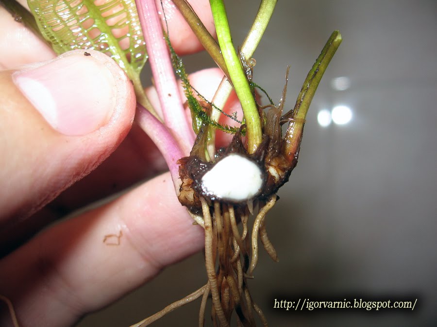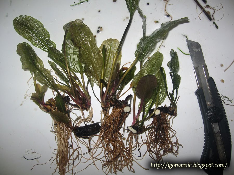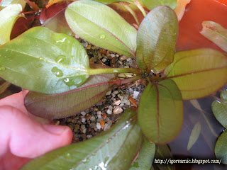 Нарезанные кустики высадил в горшки с чистой галькой, с прослойкой угля, заметил, что апоногетоны лучше растут в чистом грунте, а уголь благотворно влияет на рост апа при пересадке.